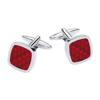 Cufflinks are used to secure button shirt cuffs and may also be an item of jewellery. Securing of the cufflinks is usually achieved via toggles or reverses which can be folded into position, there are also variants with chains or a rigid, bent rear section. The front sections of the cufflinks can be decorated with gemstones, inlays, inset material or enamel and designed in two or three-dimensional form.